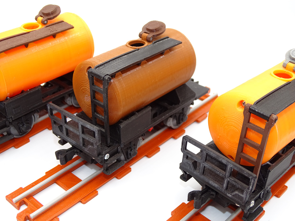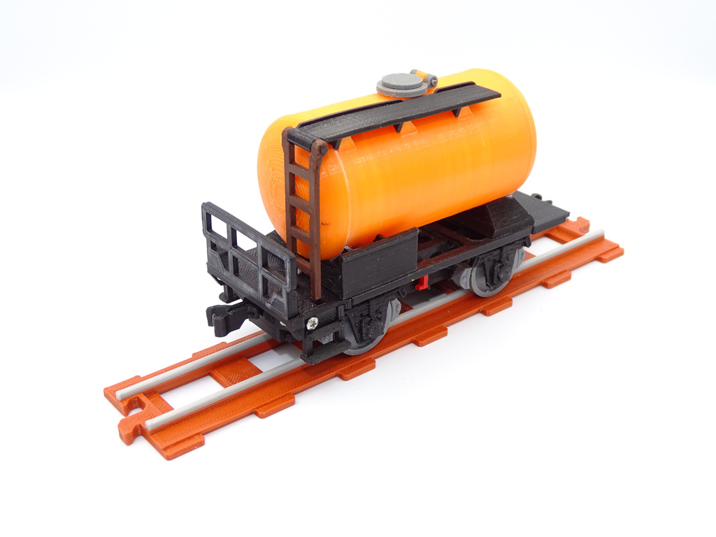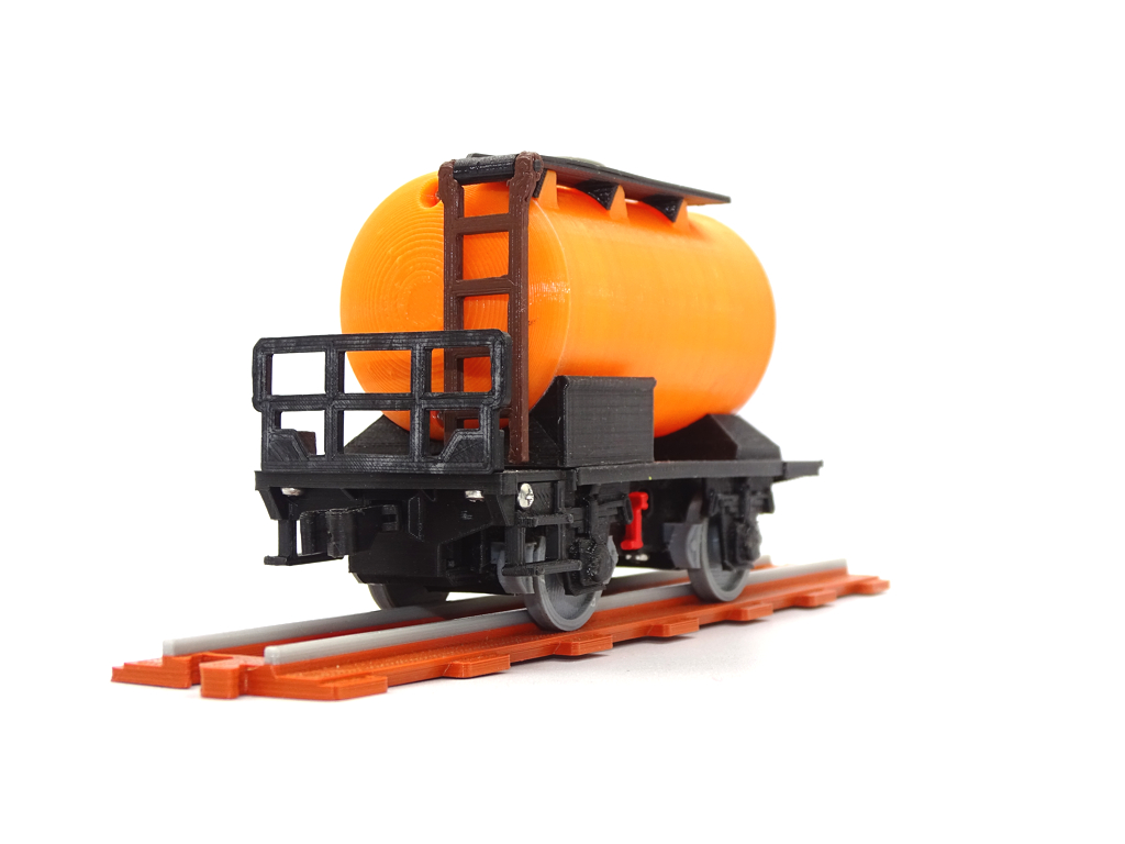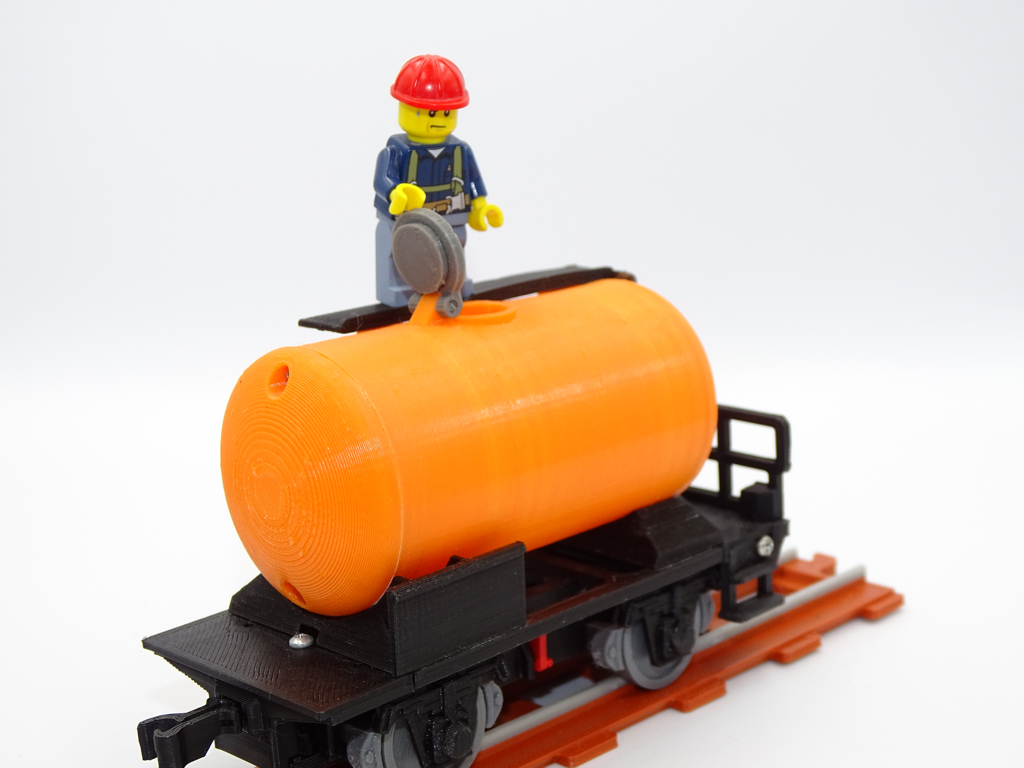 A model of cistern wagon that can be filled with water. This model fits popular brick figures and fits all our ship and train models.