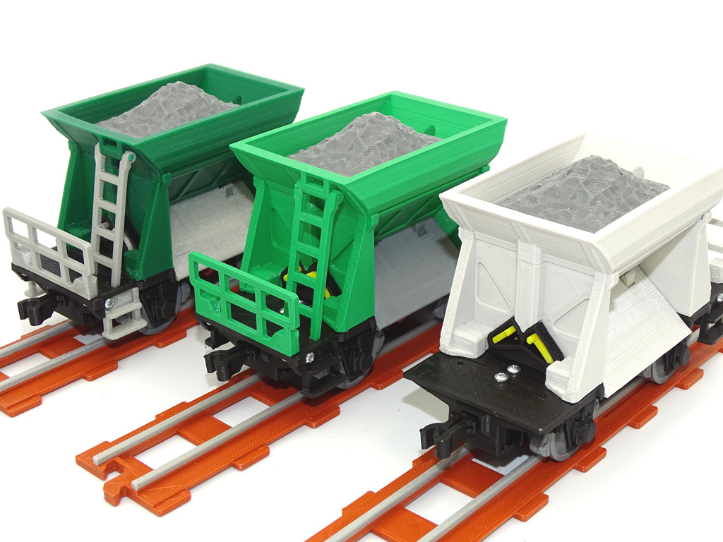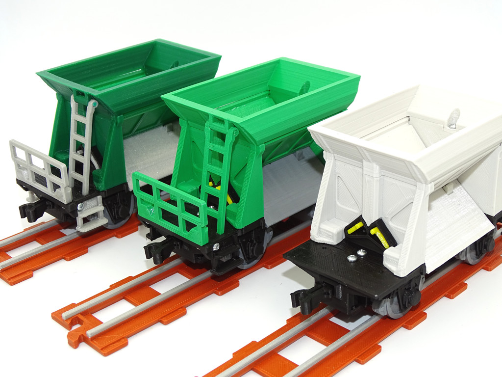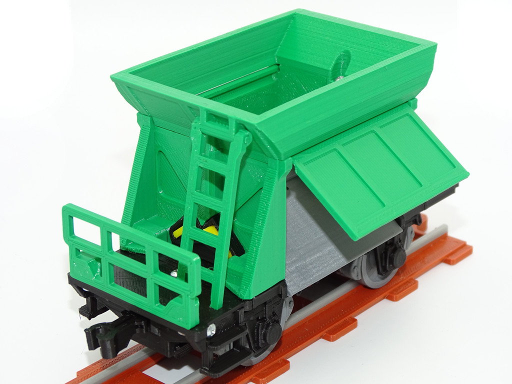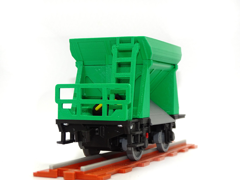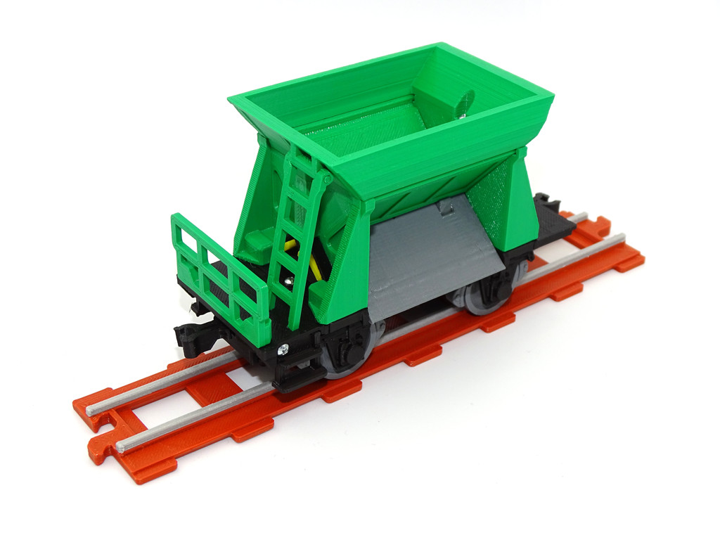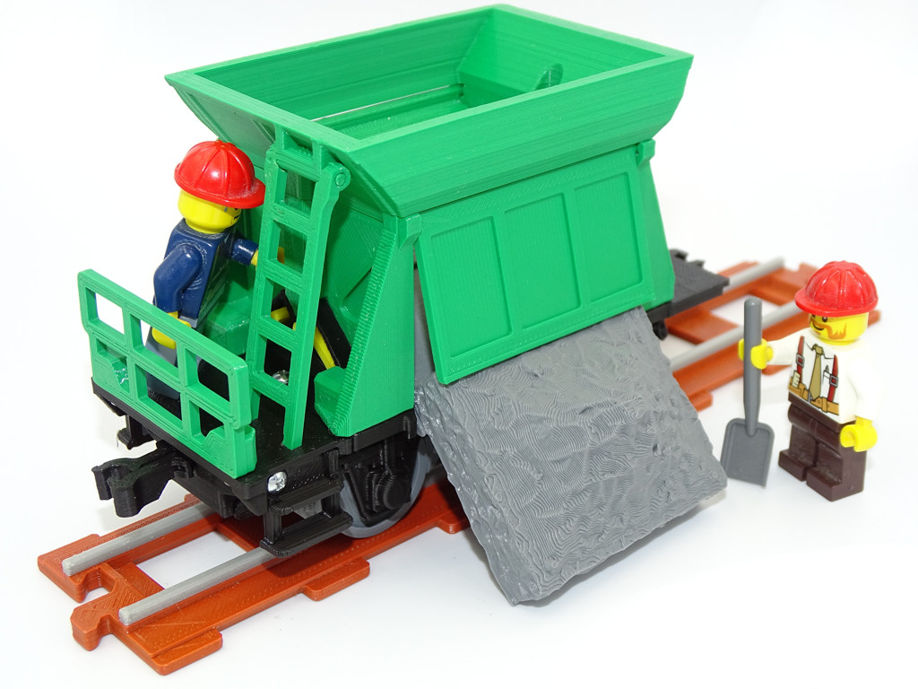 A model of gravel hopper wagon with opening cargo flaps. This model fits popular brick figures and fits all our ship and train models.