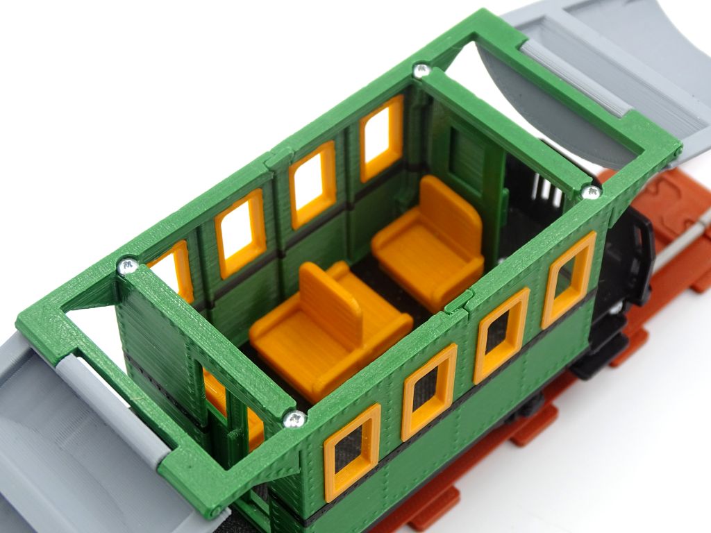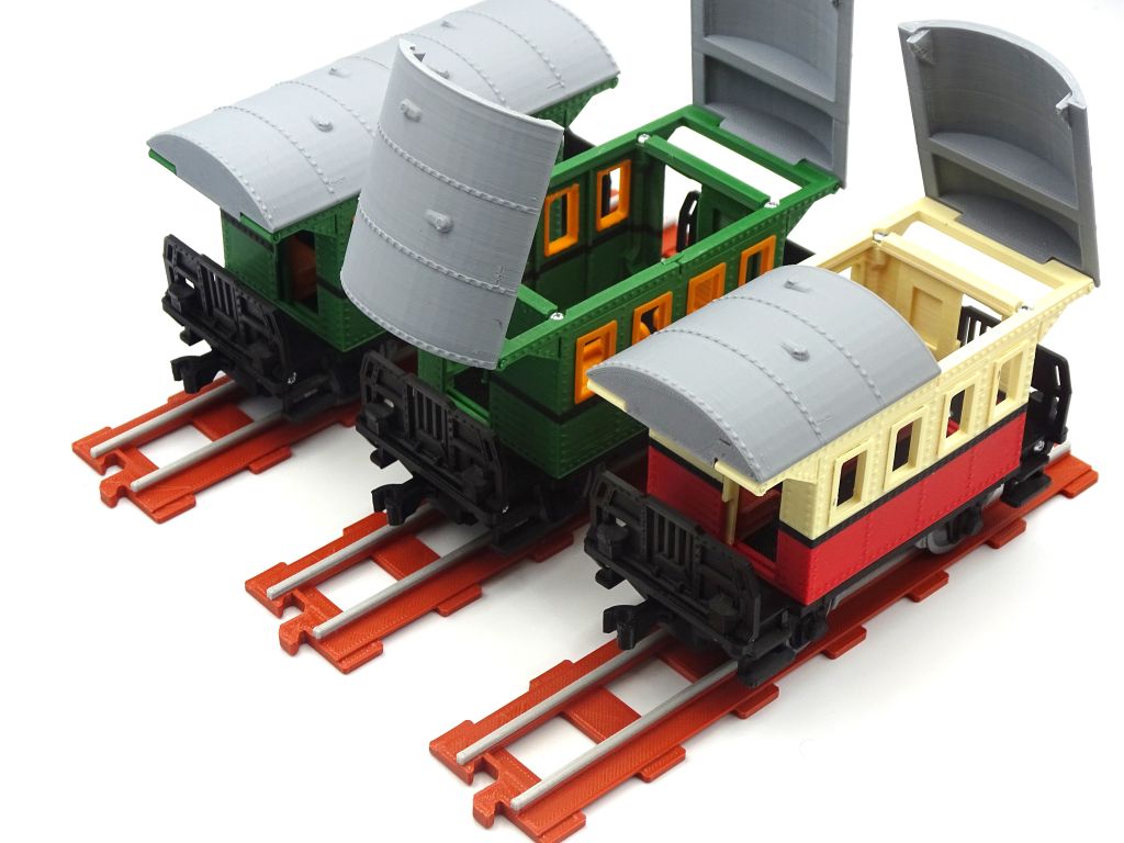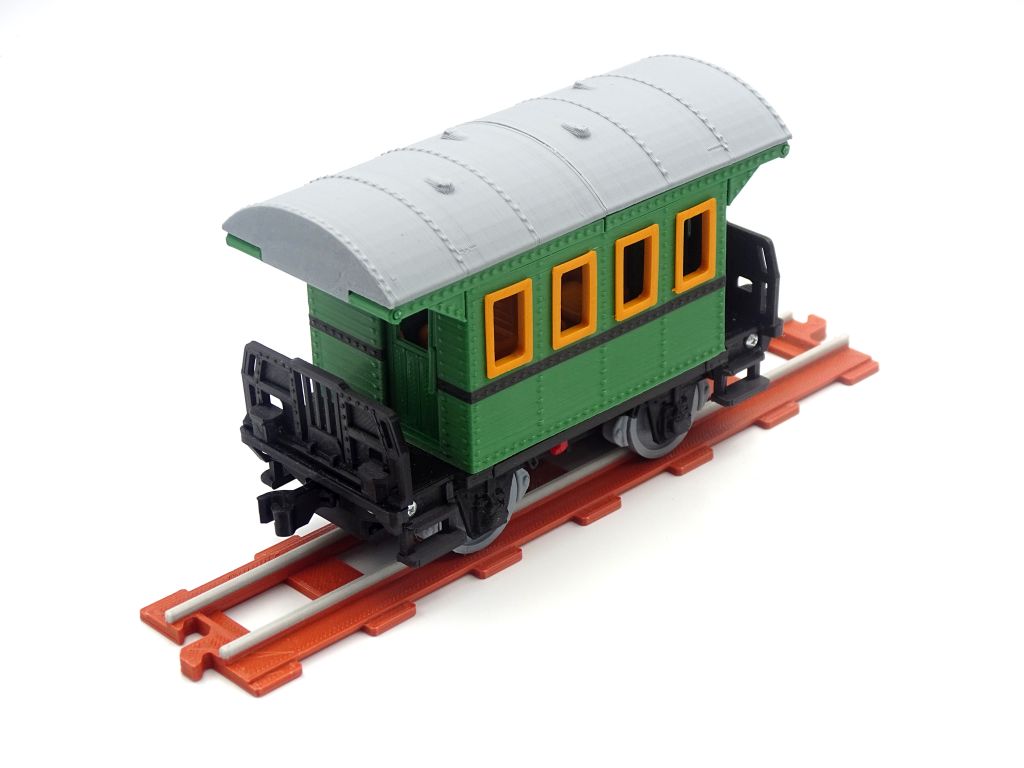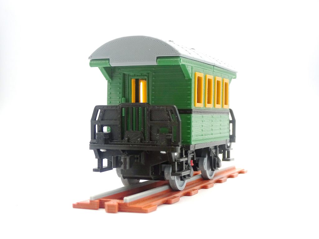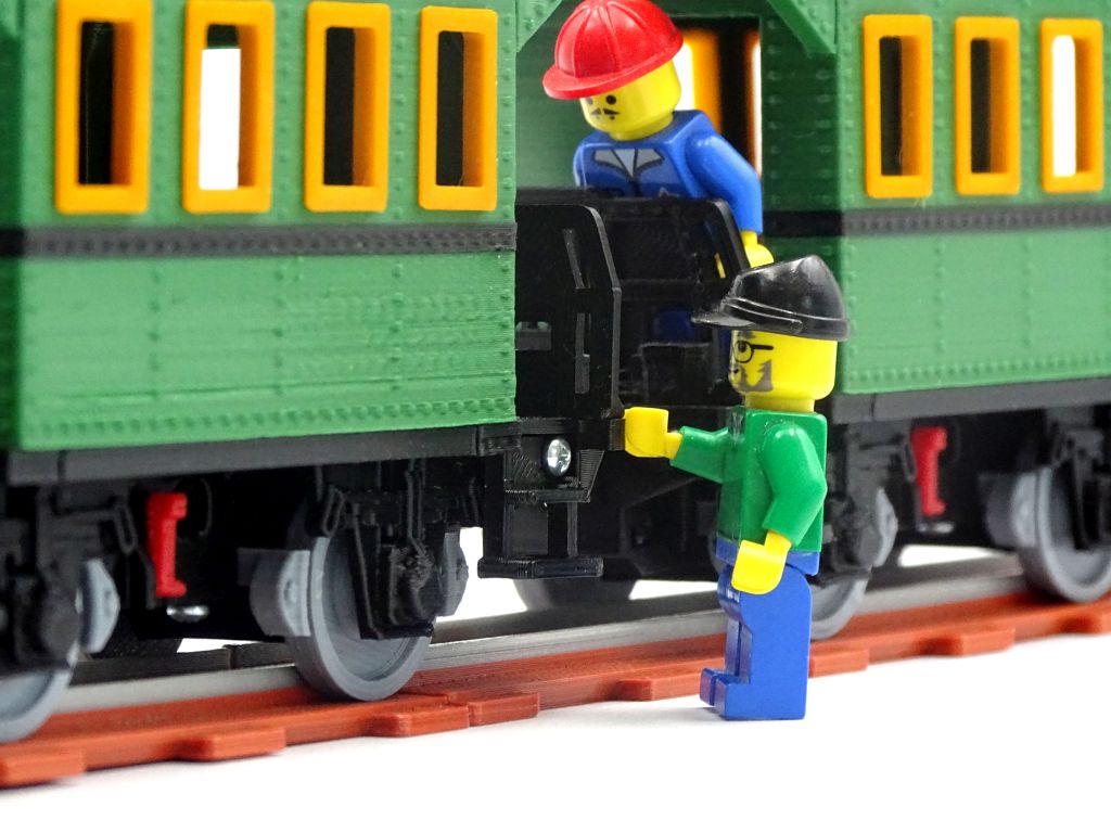 A model of retro passenger wagon with opening doors and roof. This model fits popular brick figures and fits all our ship and train models.