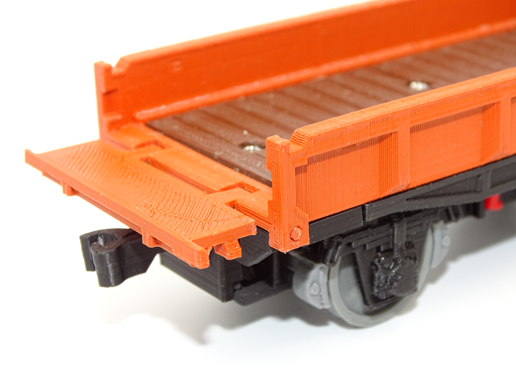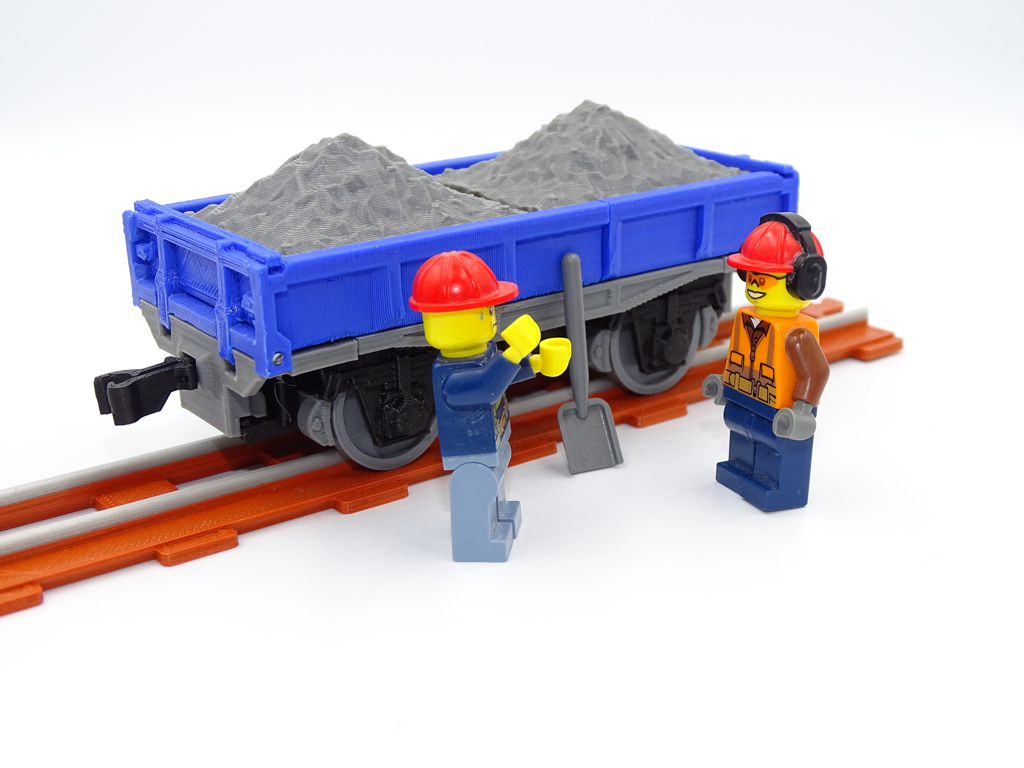 Model of a railway platform with low sides. This model fits popular brick figures and fits all our ship and train models.