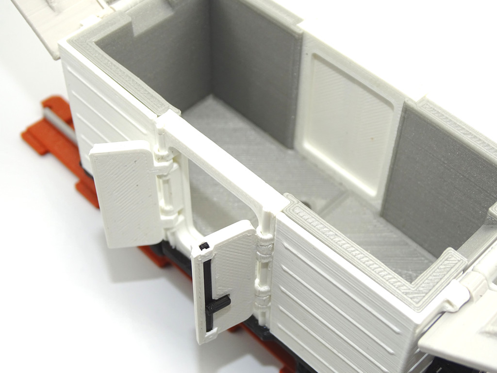 - Print all elements with 100% filling (the wagon runs better if it is a little heavier, the differences in time and filament consumption when printing with a small filling are not significant). The only exception is the roof, which can be printed with 20% infill to increase thermal insulation.