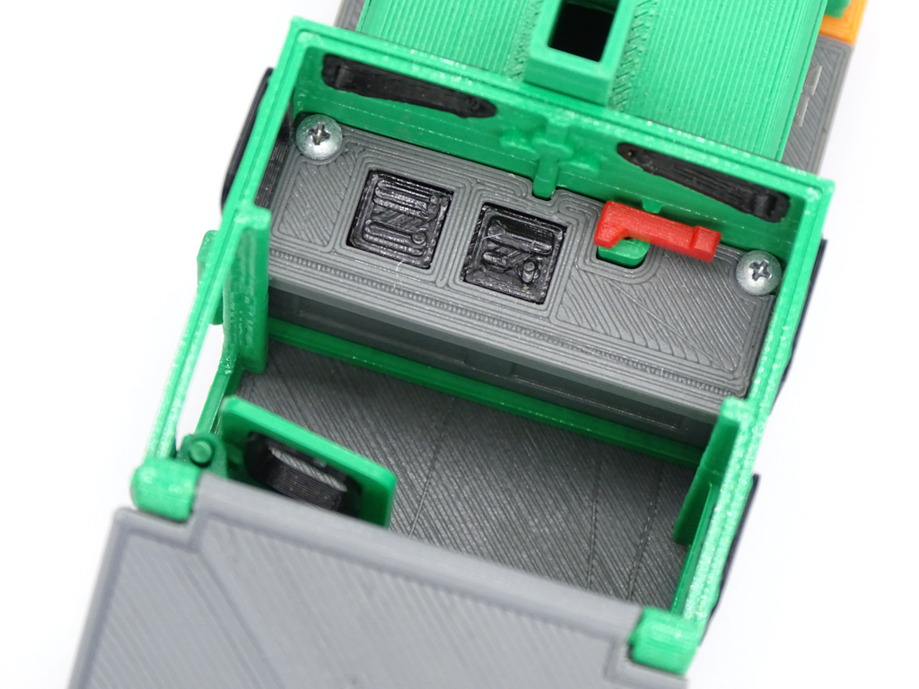 - Print all elements with 100% filling (the locomotive runs better if it is a little heavier, the differences in time and filament consumption when printing with a small filling are not significant).