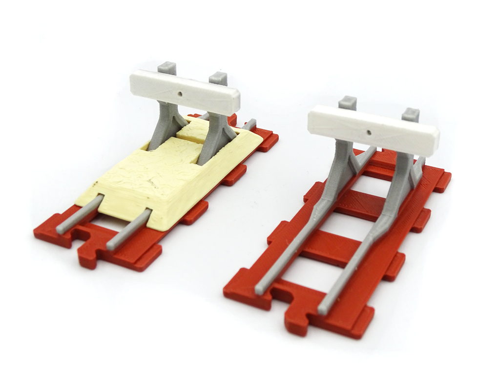 - The sand backfill buffer-stop-sand.stl is optional. If you choose to use it, insert it before attaching buffer-stop-beam.stl.